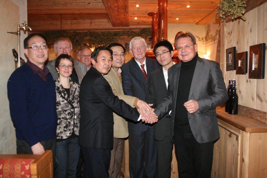 从左到右依次是: 文汇报驻慕尼黑记者站严建卫先生, Ulrich Stempel博士,克罗纳赫市旅游局负责人Kerstin Löw博士,Antlar酒店总经理Bernd Holzmann先生, 山东省政府经贸代表处处长惠宏玉处长, 新华社驻慕尼黑记者宋国成先生, 克罗纳赫狮子俱乐部负责人Hubert Heckhausen博士, 开元旅游公司总经理周鸿图先生, Wolfgang Beiergrößlein市长