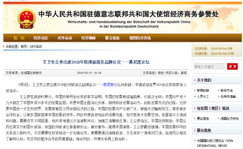 中国驻德国大使馆经济商务公使衔参赞王卫东公参出席论坛,并从一名中德中欧合作参与者和推动者的角度、从三个方面谈了他对包括旅游行业所体现的中国发展及中欧中德关系的观察和思考。王公参进一步肯定了开元举办欧洲品牌会议和旅游论坛在加强业界交流、促进行业合作方面的直接作用以及加强中欧中德民间交往、促进更全面深入合作的重要意义。王卫东公参预祝活动圆满成功,双方旅游业界取得更丰硕的合作成果,并期待在各方的共同努力下,中德、中欧全面战略伙伴关系再结新成果、再上新台阶!王卫东公参的致辞承上启下,下午活动的第二部分——慕尼黑旅游论坛随即展开。