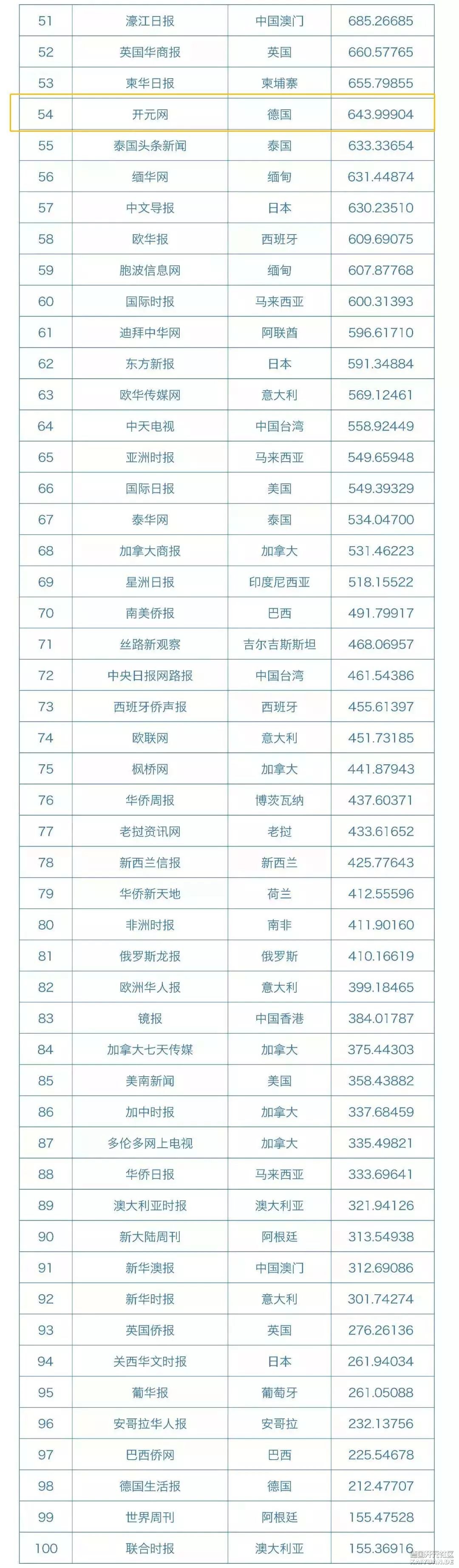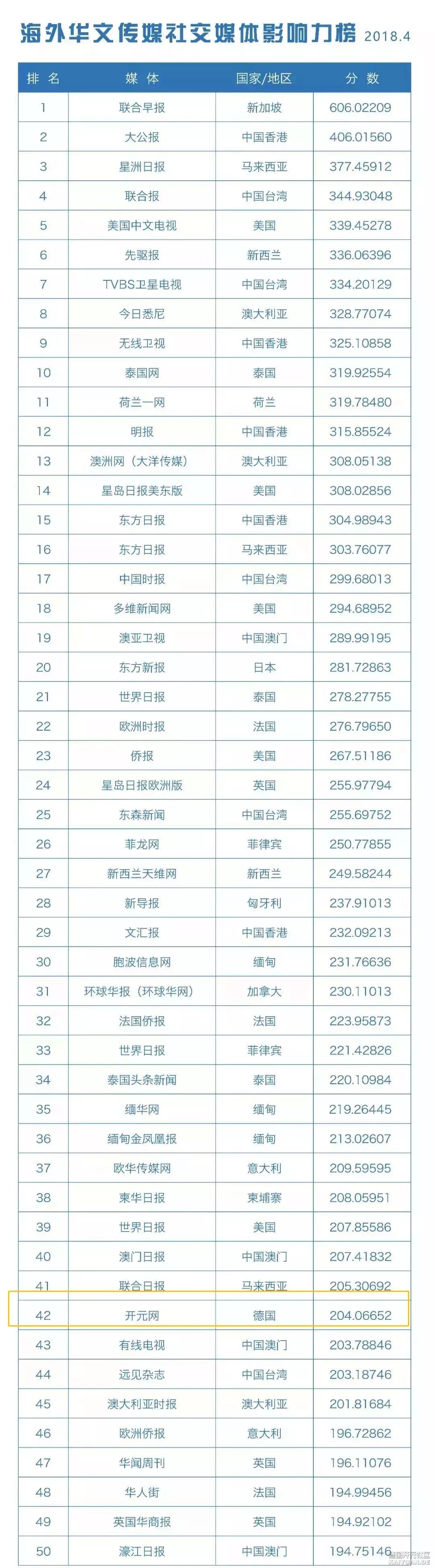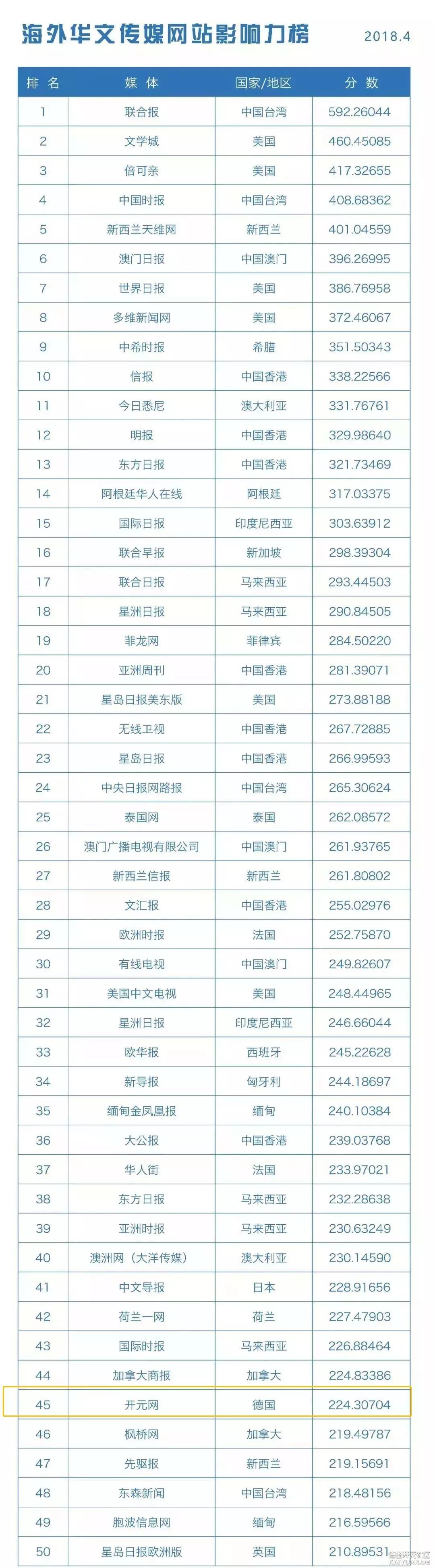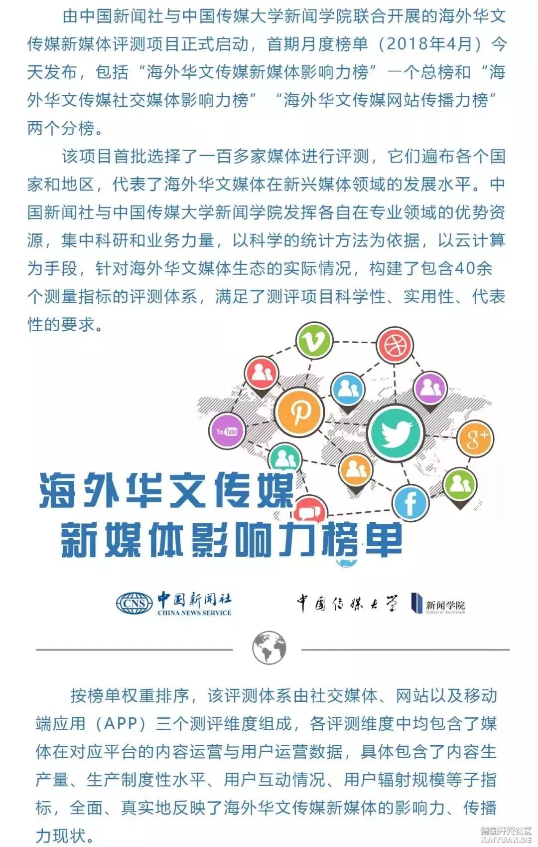海外华文传媒新媒体影响力 开元网排名德国第一名