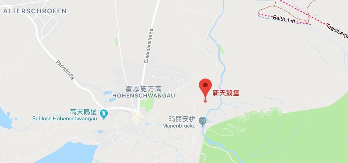 您可以乘坐从Münich到Füssen的火车(您可以在火车站购买您的车票)。从Füsse站,您可以乘坐公交(“Hohenschwangau Neuschwanstein Castles, Schwangau”)或将您的轿车停放在城堡附近的停车场内