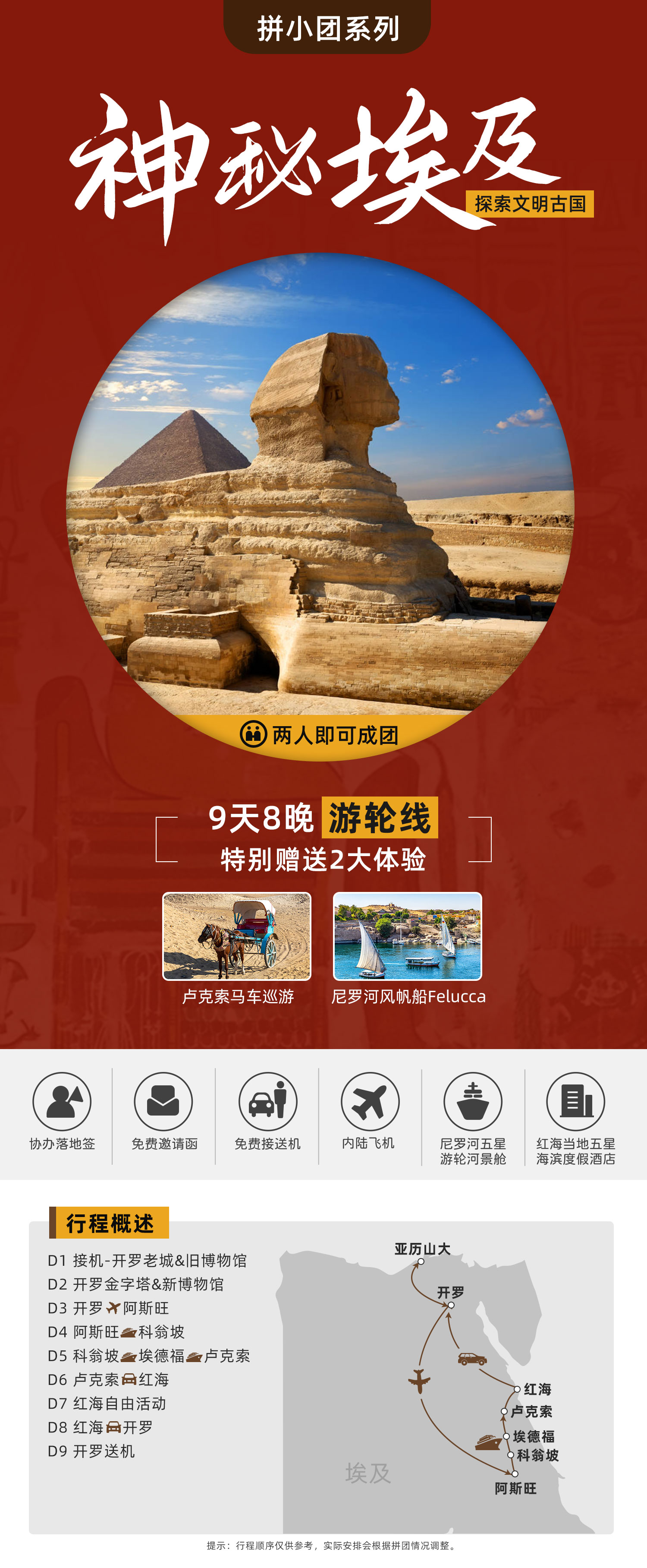 路线名称:<拼小团>【游轮线】埃及开罗+红海+卢克索+阿斯旺9日游 (落地签) ; [ 中东非旅游, 中东非 ]