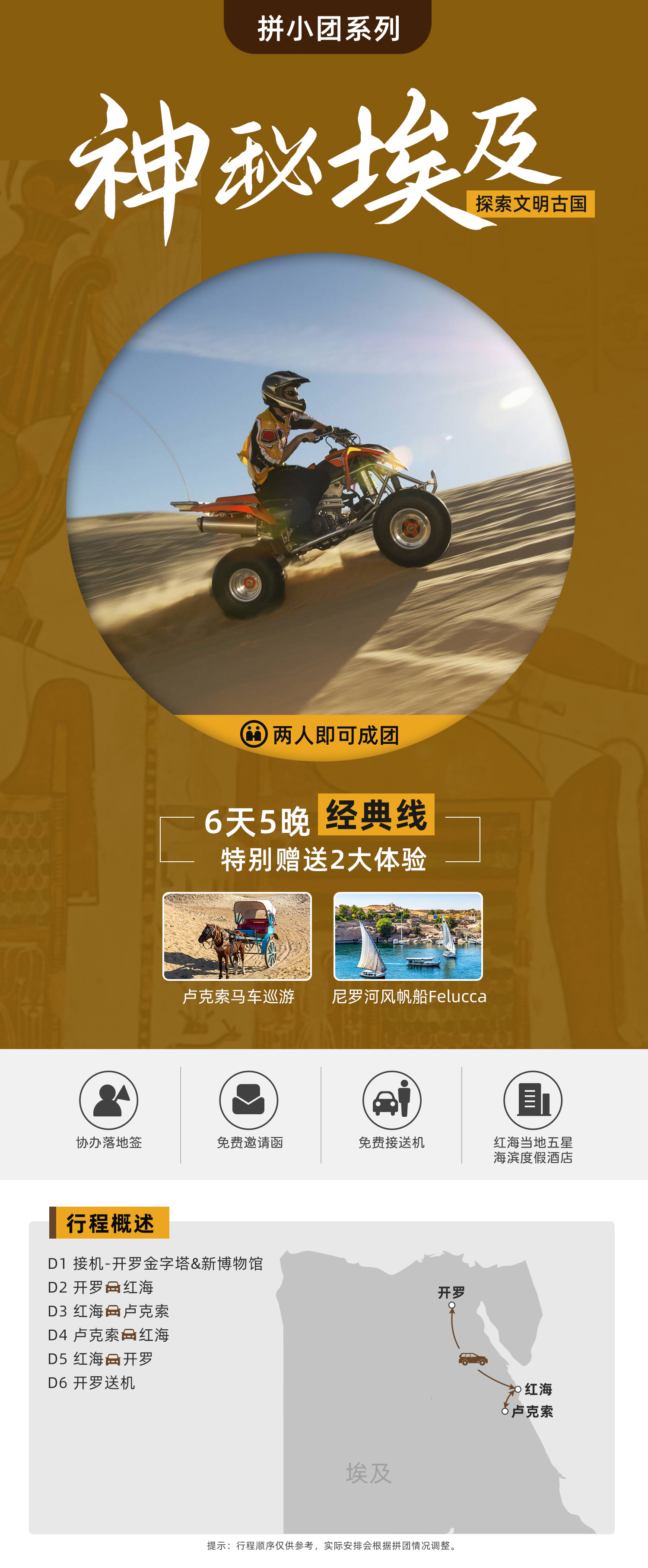 路线名称:<拼小团>【经典线】埃及开罗+红海+卢克索6日游(落地签) ; [ 中东非旅游, 中东非 ]