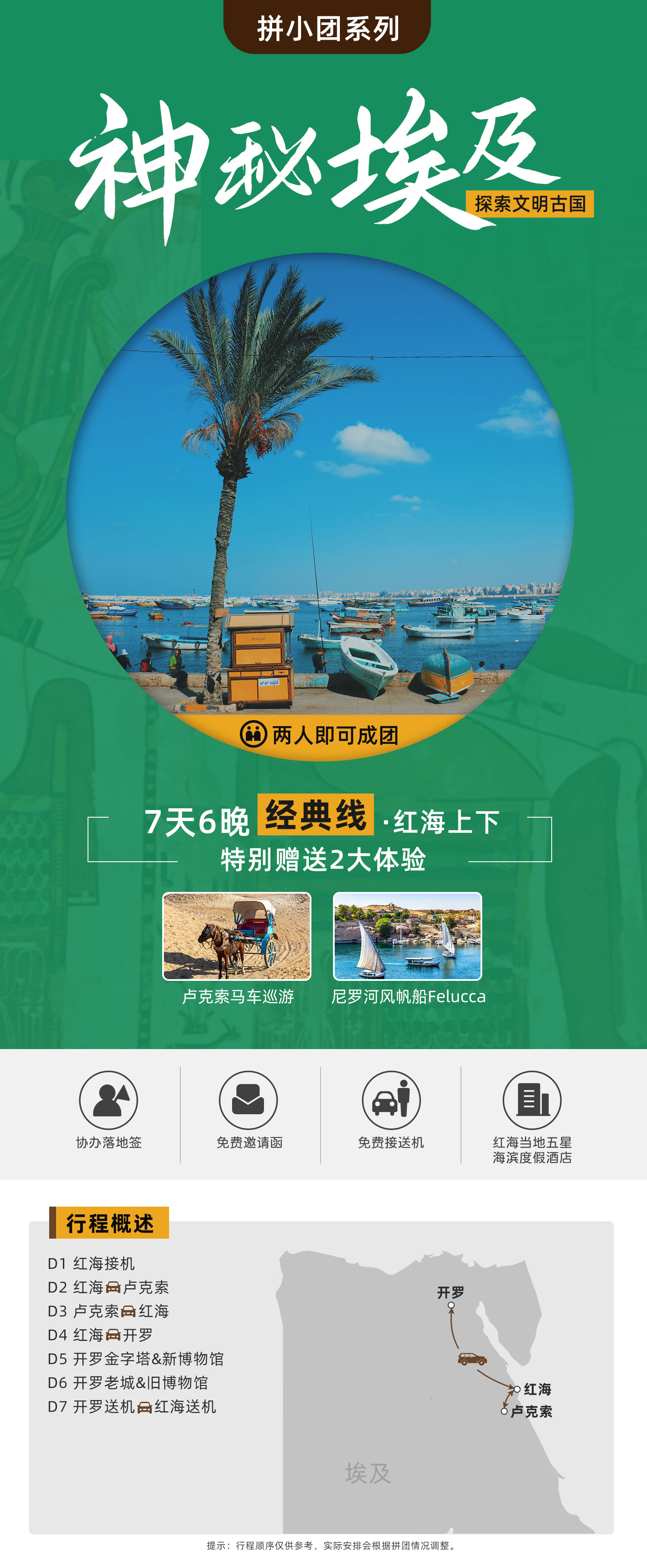 <拼小团>【经典线】埃及开罗+红海+卢克索7日游(开罗上下•落地签)