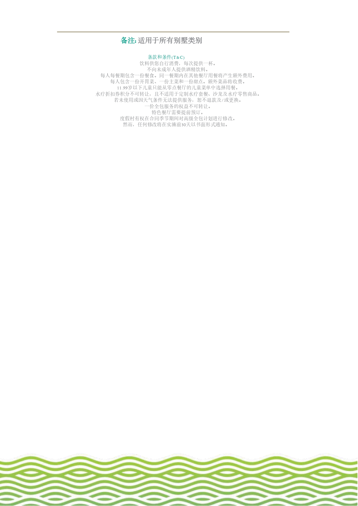 ②每餐仅限制在一个餐厅使用,额外餐厅用餐将会另外收费;