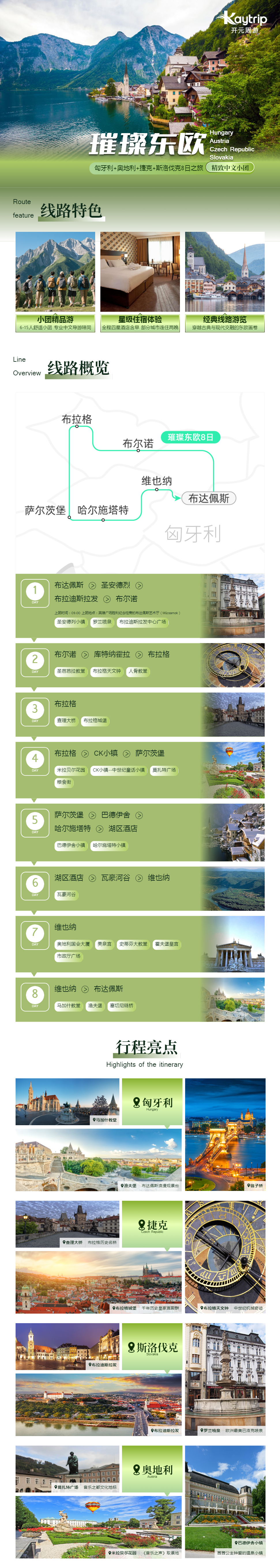 布达佩斯 圣安德烈 布拉迪斯拉发 布尔诺 库特纳霍拉 布拉格 CK小镇 萨尔茨堡 巴德伊舍 哈尔施塔特 湖区酒店 瓦豪河谷 维也纳 布达佩斯