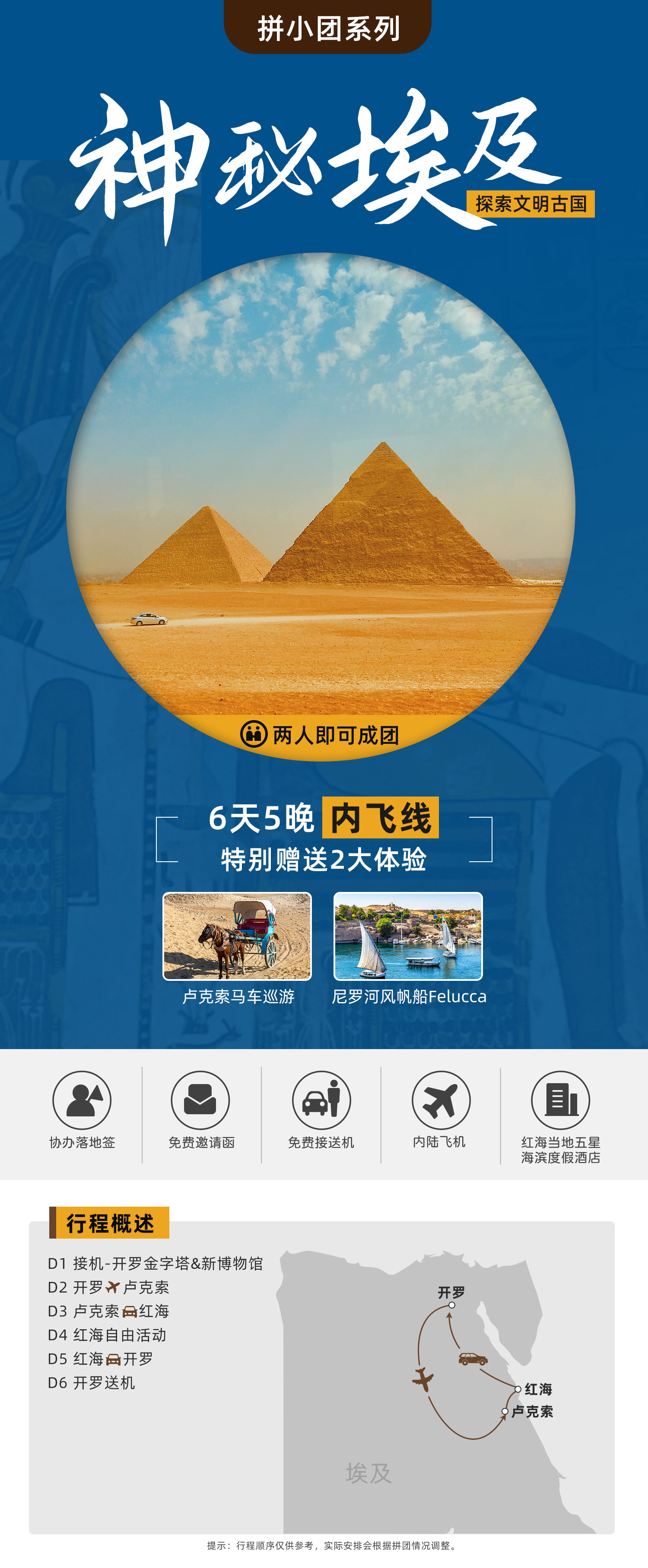 <拼小团>【内飞线】埃及开罗+红海+卢克索+亚历山大8日游(落地签)