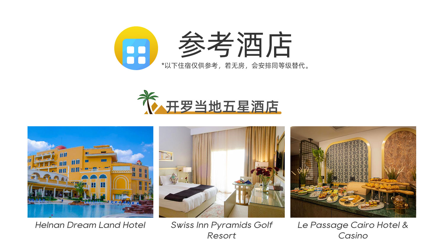 2)中文导游均为持证埃及人,部分导游常年生活和工作在开罗以外区域(卢克索、阿斯旺)等,因此行程存在分段导游带团、部分城市间接驳无导游陪同等情况。